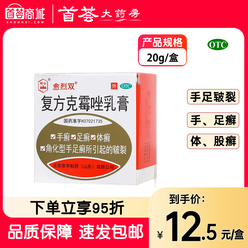 非处方药 愈烈双复方克霉唑乳膏20g/盒手足皲裂